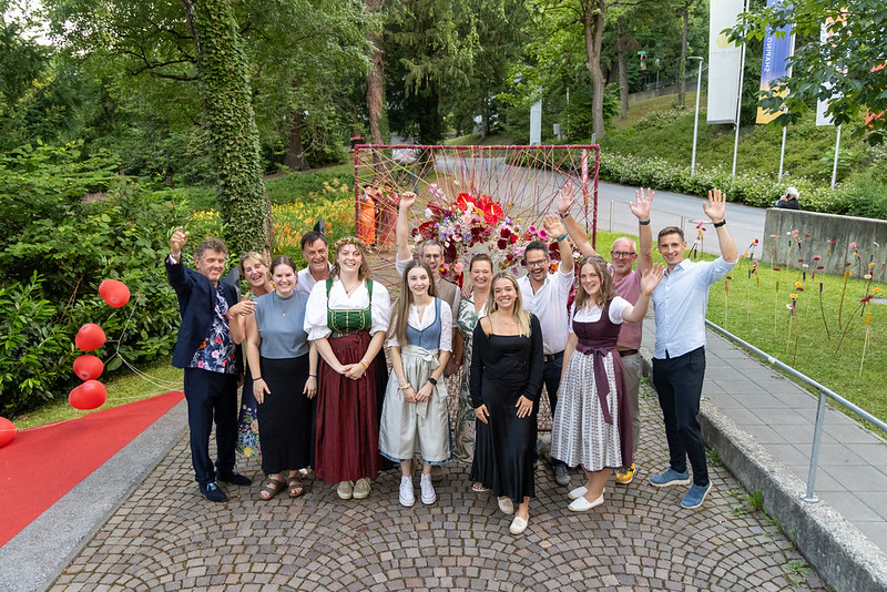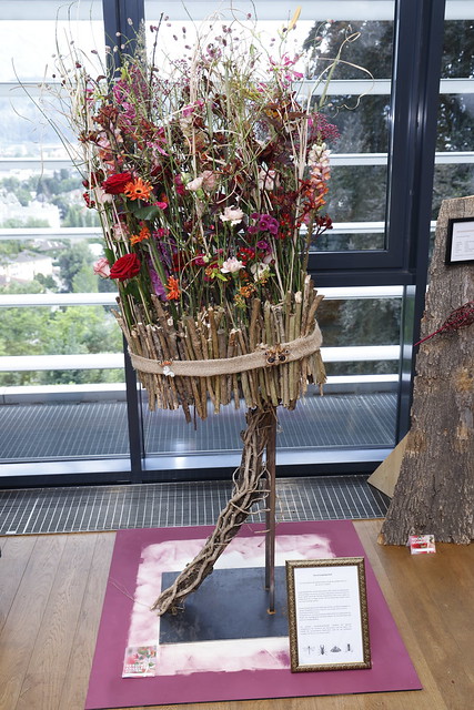Die Schülerinnen und Schüler der 3. Klasse Floristen der LBS Langenlois haben für die Veranstaltung zur 100 Jahre Langenlois Feier in der Gartenbauschule Kleidung aus Blumen entworfen. Diese wurde ausgestellt und einige auch auf dem Laufsteg präsentiert.