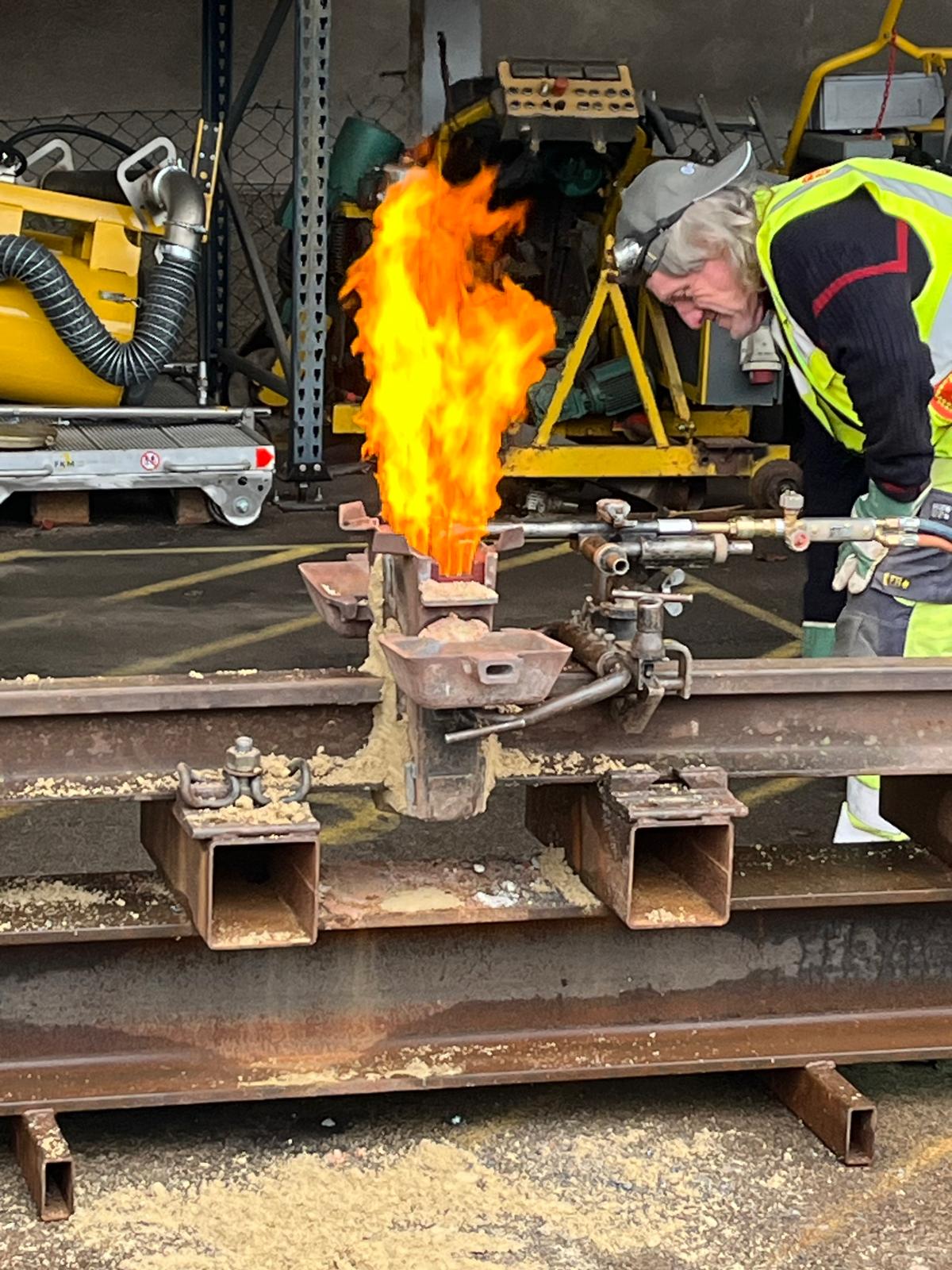 Auf Einladung von Herrn Klanner, FKM, reisten am 2. April 2024 die Fachlehrer Sommer, Waidbacher und Winkler nach Asten. Hier wurde uns die neue Schienenkopfschleifmaschine vorgeführt. Weiters durften wir bei der Abnahmeprüfung einer von[nbsp] FKM neu entwickelten Hebetraverse dabei sein. Nach einer Werksführung bei der Firma Neumüller, wo diese Prüfung stattfand, ging es auf Vermittlung von Herrn Hezoucky, ebenfalls FKM, weiter nach Traun Bf. Dort erlebten wir das schweißstechnische Ausbessern von einem Mangangussherz einer EW. Danke an alle Beteiligten, besonders an Herrn Bahnmeister Schöbich und an den Schweißtechniker Herrn Pumpernik für die umfassenden Infos zu ihrer Arbeit.